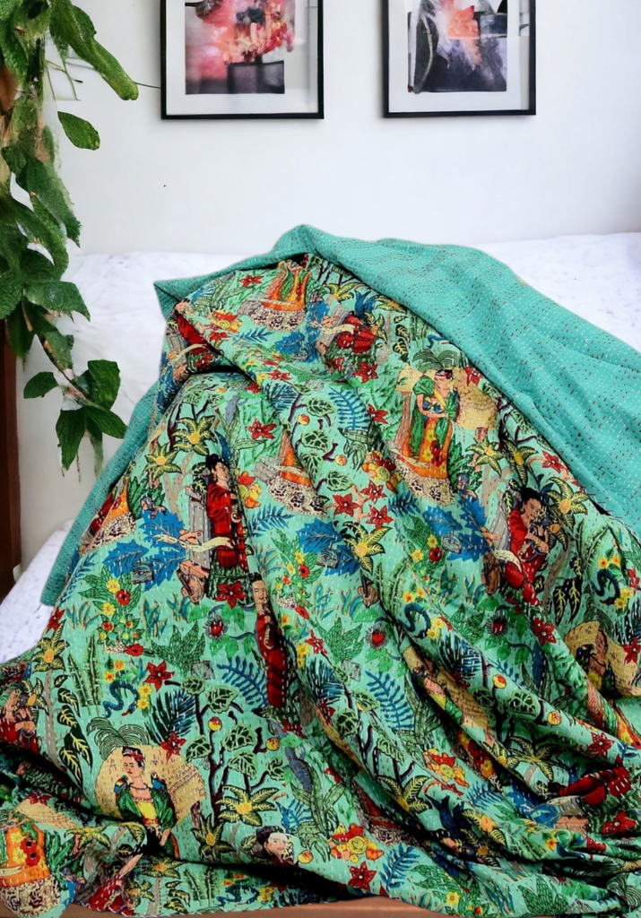 Kantha Quilt Frida Khalo Mint Blue
