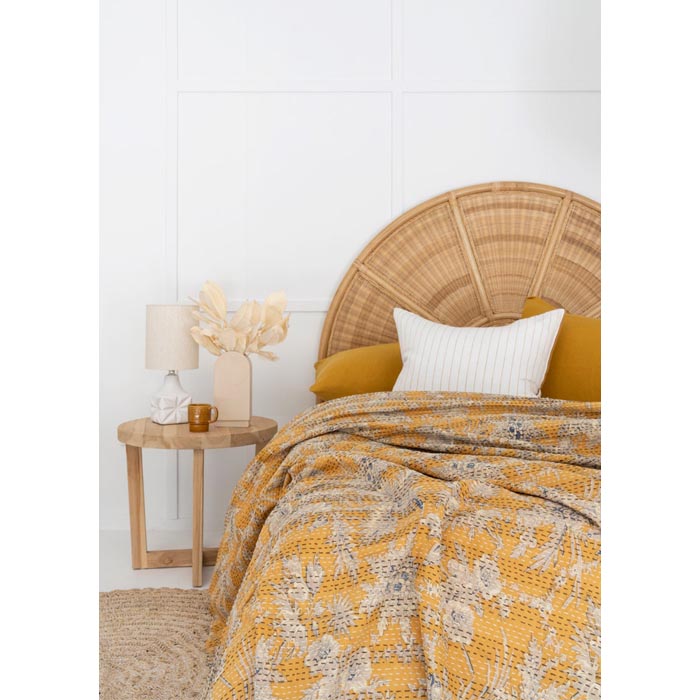 Kantha Quilt Indian Quilt Block Print Quilt Bedspread Bohemian Boho Cotton Throw Quilt Handmade Blanket Doona King Size KQ07