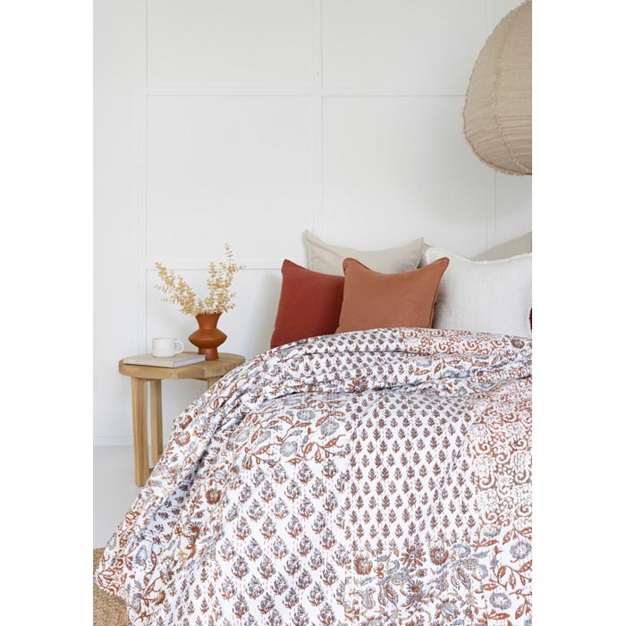 Kantha Quilt Indian Quilt Block Print Quilt Bedspread Bohemian Boho Cotton Throw Quilt Handmade Blanket Doona King Size KQ31