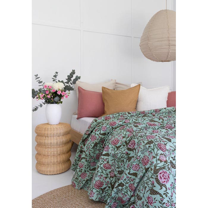 Kantha Quilt Indian Quilt Block Print Quilt Bedspread Bohemian Boho Cotton Throw Quilt Handmade Blanket Doona King Size KQ38