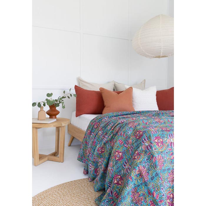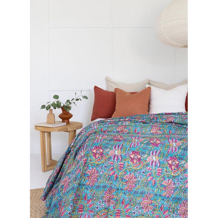 Kantha Quilt Indian Quilt Block Print Quilt Bedspread Bohemian Boho Cotton Throw Quilt Handmade Blanket Doona King Size KQ48