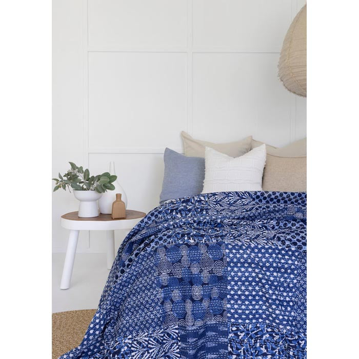 Kantha Quilt Indian Quilt Block Print Quilt Bedspread Bohemian Boho Cotton Throw Quilt Handmade Blanket Doona King Size KQ51
