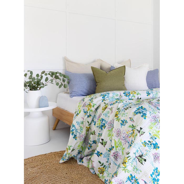 Kantha Quilt Indian Quilt Block Print Quilt Bedspread Bohemian Boho Cotton Throw Quilt Handmade Blanket Doona King Size KQ55
