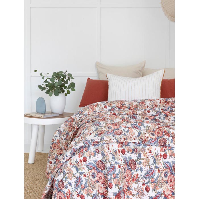Kantha Quilt Indian Quilt Block Print Quilt Bedspread Bohemian Boho Cotton Throw Quilt Handmade Blanket Doona King Size KQ59