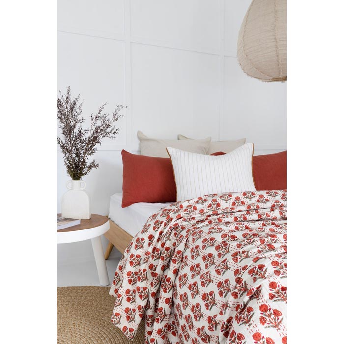 Kantha Quilt Indian Quilt Block Print Quilt Bedspread Bohemian Boho Cotton Throw Quilt Handmade Blanket Doona King Size KQ61