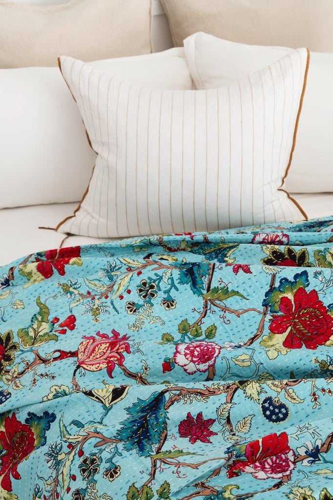 Hand crafted softly quilted handmade by artisans in India. The entire quilt is painstakingly hand embroidered with end number of straight running stitches to create a unique product, one of a kind (No two are alike), thus it’s a perfect GIFT too (Wedding Gift). All these make them a Vintage Kantha Quilt.