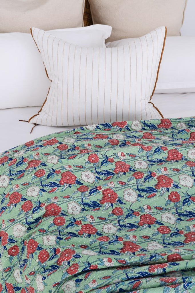 Hand crafted softly quilted handmade by artisans in India. The entire quilt is painstakingly hand embroidered with end number of straight running stitches to create a unique product, one of a kind (No two are alike), thus it’s a perfect GIFT too (Wedding Gift). All these make them a Vintage Kantha Quilt.