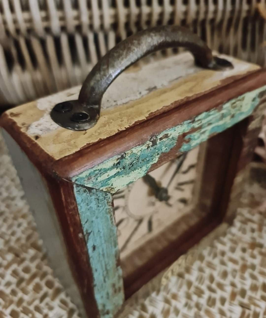 RECYCLED AGED VINTAGE TABLE CLOCK