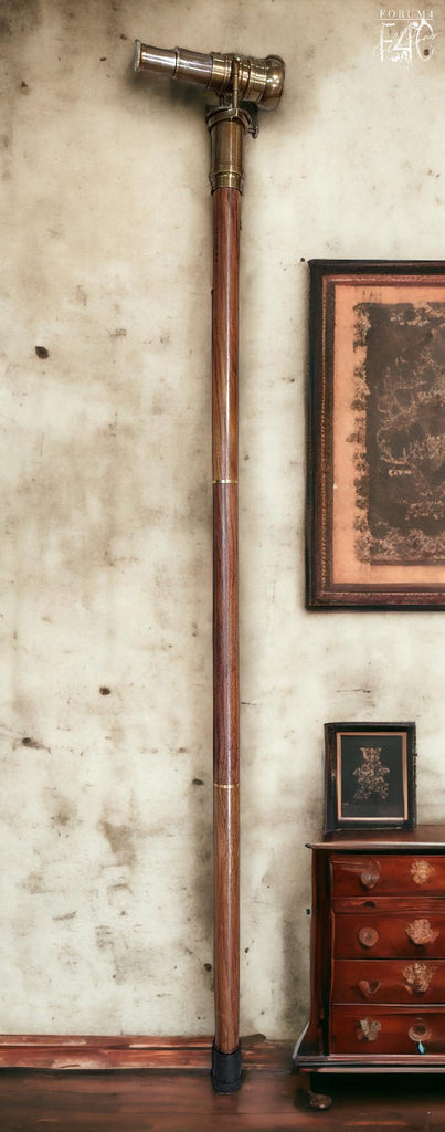 VINTAGE WALKING STICK WITH COMPASS & TELESCOPE HANDLE