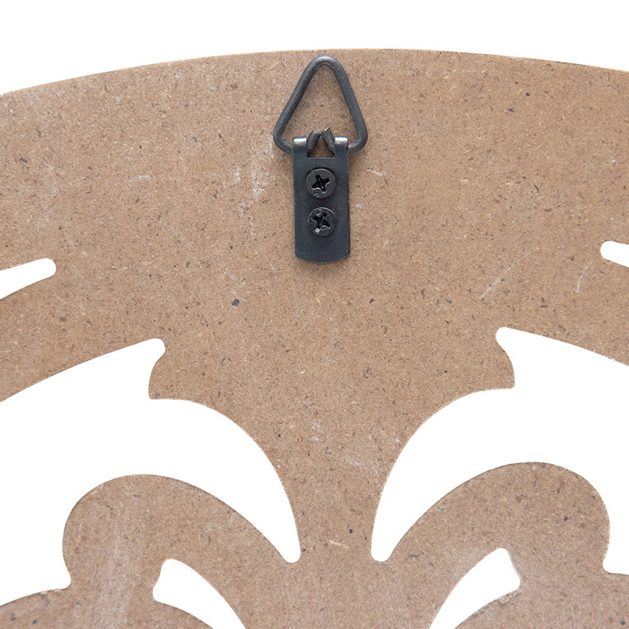 Add a touch of French romance to your space with this beautiful Fleur Moulded 60cm Wall Art. A quality MDF circular piece in a natural and distressed white finish with an alluring look, hang on your walls as a statement in the living room, hallway, or bedroom. Fits interiors well that have French provincial or vintage designs. A hook is included on the back of the wall art, ready to hang for your convenience.