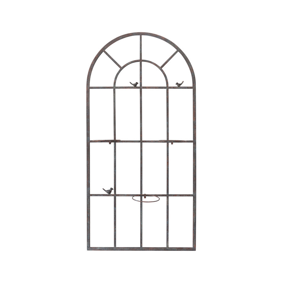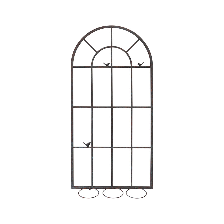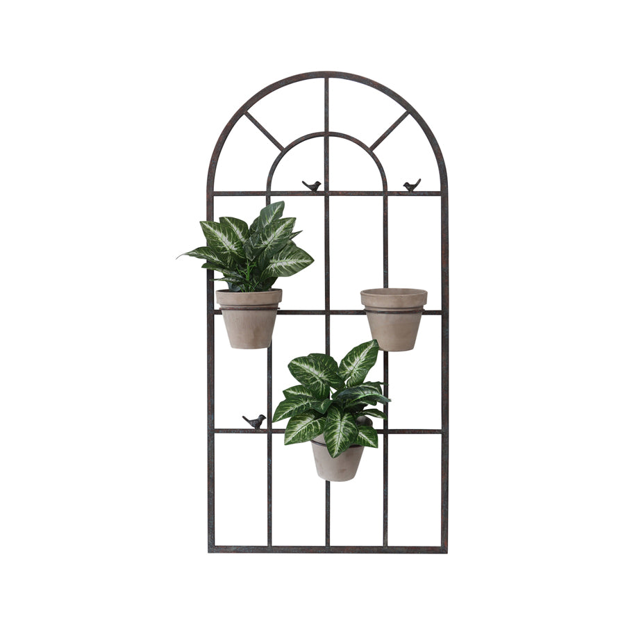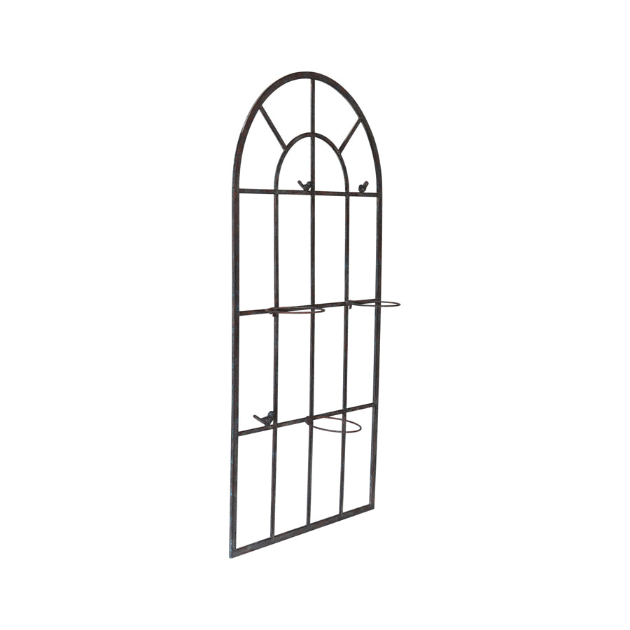 Maximise your use of space in style with the French Window Pot Planter Wall art. Made from sturdy iron in a distressed green /rust-coloured finish, this piece is made for both undercover outdoor and indoor use. Hang and add your favourite potted leafy plants, creepers or herbs in the holders. Greenery and brighten up your home without losing precious floor space. Features three cute little birds and comes with three removable metal pot planter holders - style these how you like or take them off and enjoy this piece as a wall art on it's own. *Fits 15cm diameter pot planters.