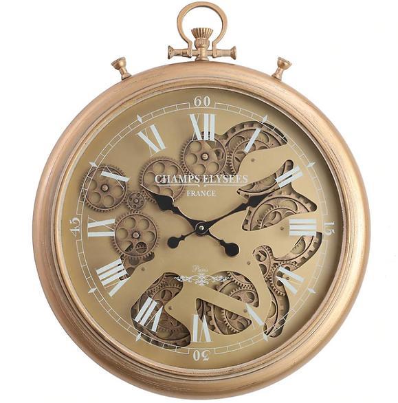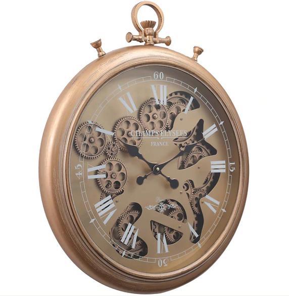 MOVING GEARS INDUSTRIAL WALL CLOCK - RUSTIC GOLD