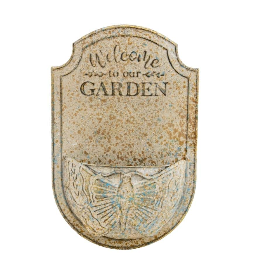 Rustic Provincial "Welcome to our Garden" Butterfly wall planter