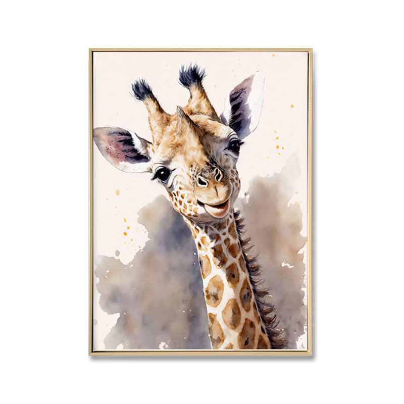 WATERCOLOUR ZOO FRIENDS - BABY GIRAFFE - FRAMED CANVAS WALL DECOR