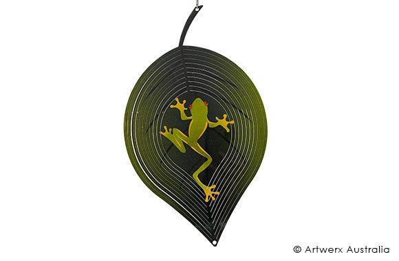 GREEN TREE FROG - COLOURED - STAINLESS STEEL WIND WHIRL SPINNER