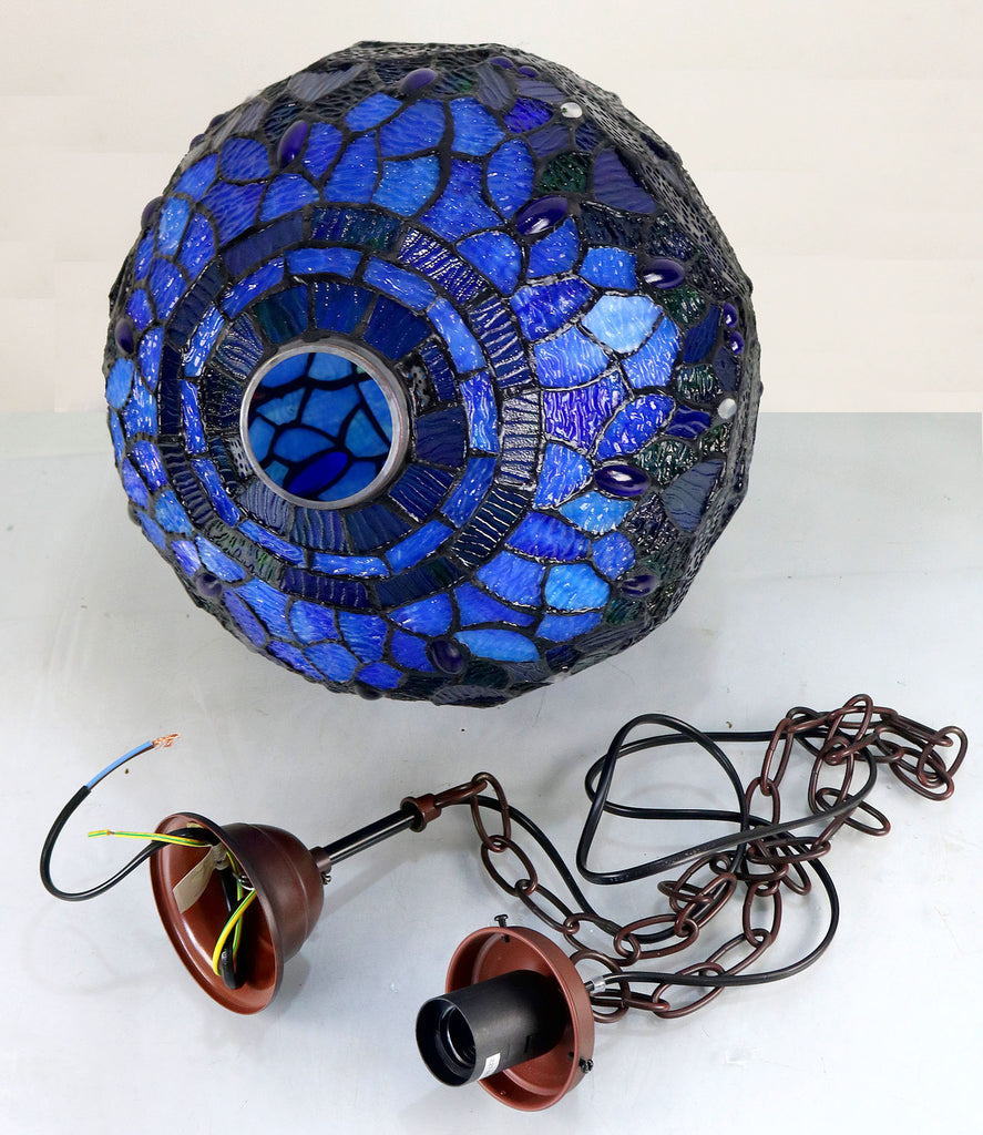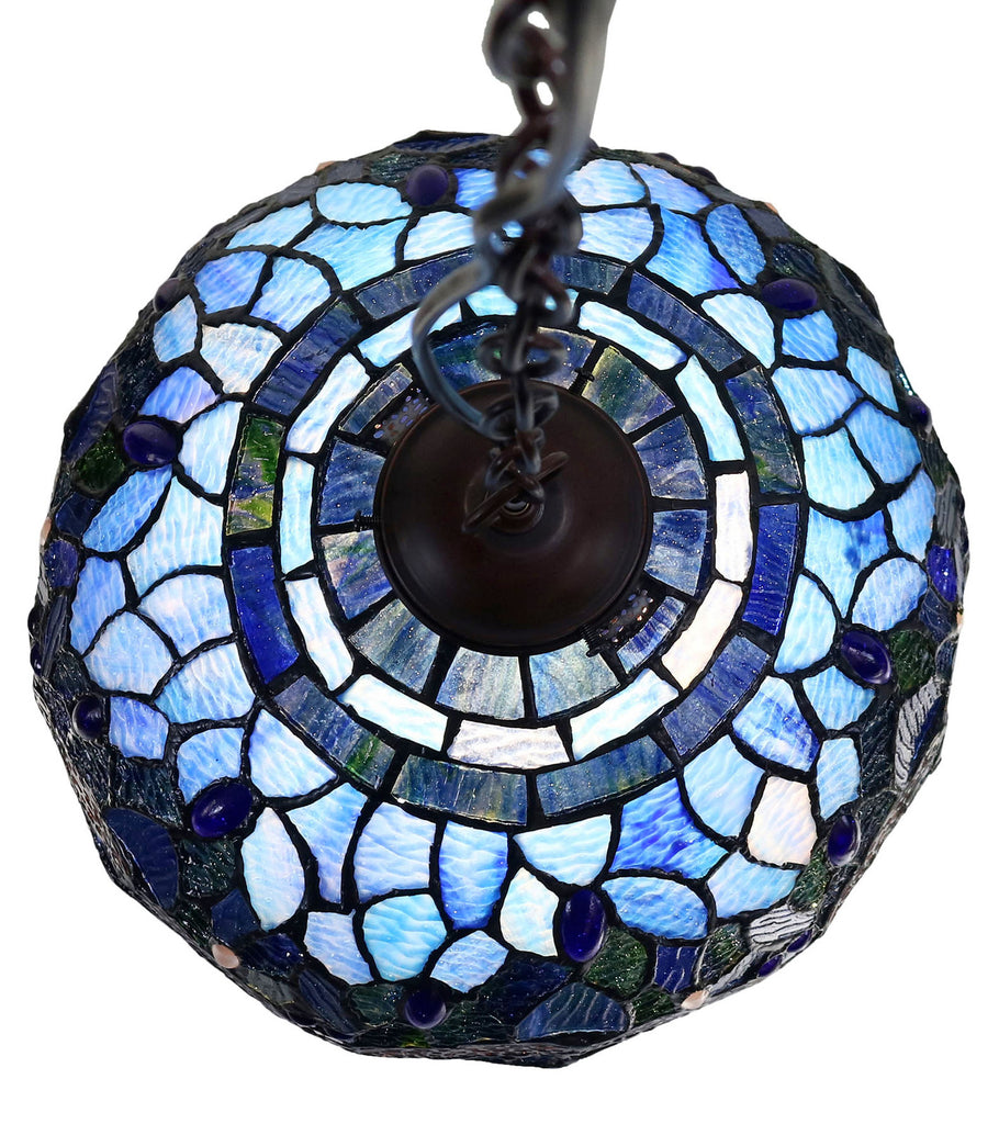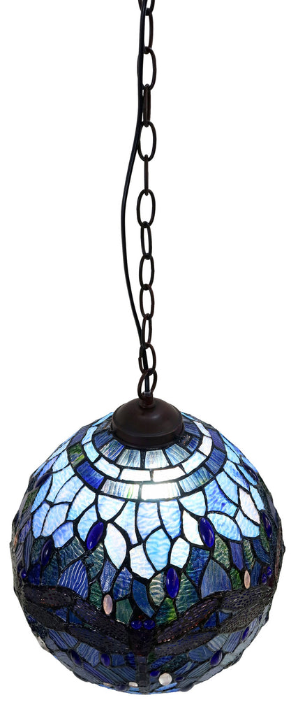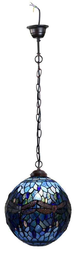 34cm Blue Dragonfly Hanging Lamp Round - Mosaic Stained Glass - Leadlight