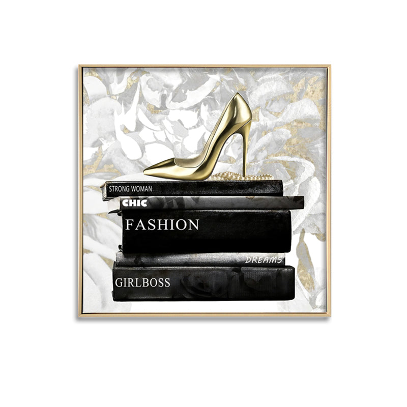 CHIC FASHION HIGH HEEL - FRAMED BRUSHED CANVAS WALL DECOR