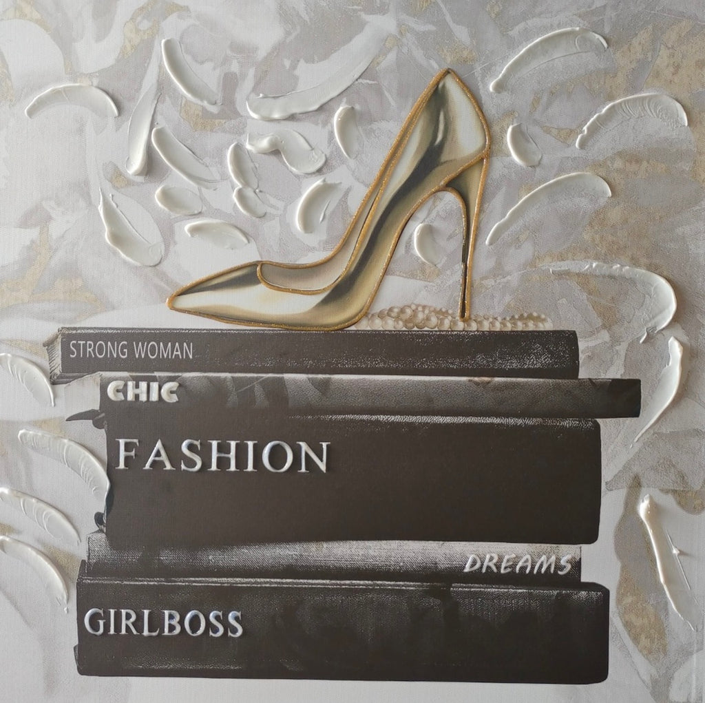 Fashion Gold High heel with books - Brushed paint on canvas detail