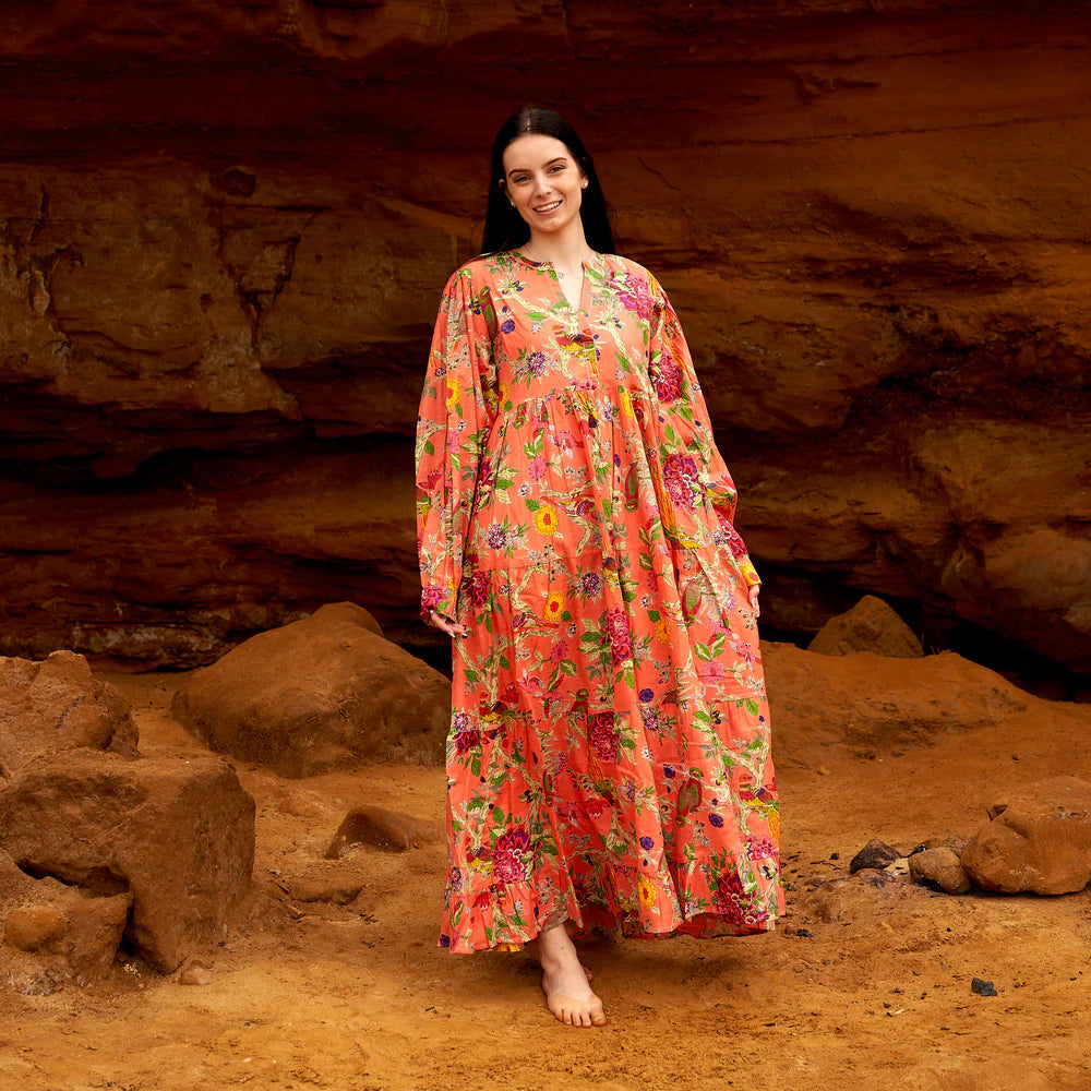 COTTON LONG SLEEVE MAXI DRESS - TALKING TROPICS