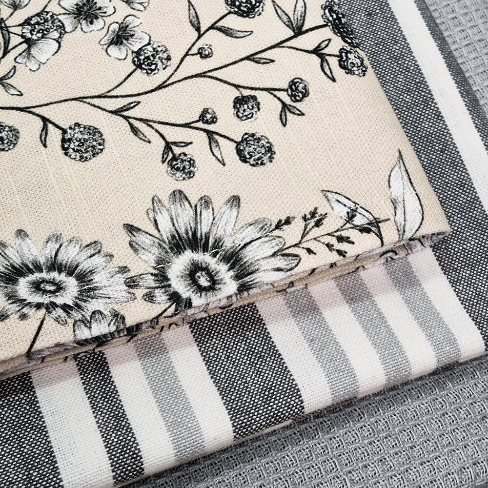 The Blossom Tea Towel set has been designed in Australia and inspired by the blooming and blossoming of wild field flowers! This pack features one printed design, one striped design and one plain waffle.
