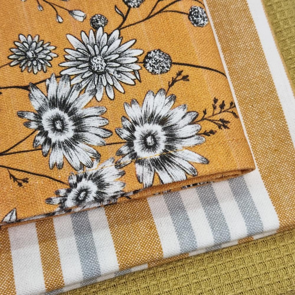 The Blossom Tea Towel set has been designed in Australia and inspired by the blooming and blossoming of wild field flowers! This pack features one printed design, one striped design and one plain waffle.