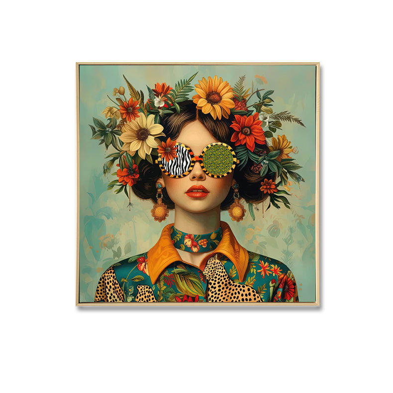 EVELYN FLORAL GIRL BRUSHED PAINT CANVAS FRAMED WALL DECOR