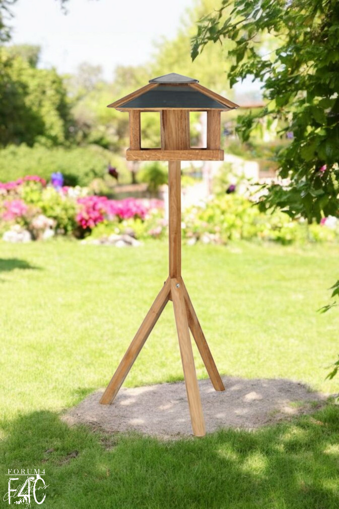 Invite a variety of birds to your garden with this stylish Freestanding Black & Oak Bird Feeder. Crafted from high-quality oak and featuring a sleek black roof, this modern bird table is both functional and elegant. Equipped with a convenient silo, it ensures that bird feed is dispensed gradually and stays dry, even in wet weather. The open structure allows birds to approach from all directions, while the large feeding tray accommodates multiple birds at once, making it an ideal feeding station for all your feathered visitors. Complete with a sturdy stand, this bird feeder combines practicality and charm for any outdoor space.