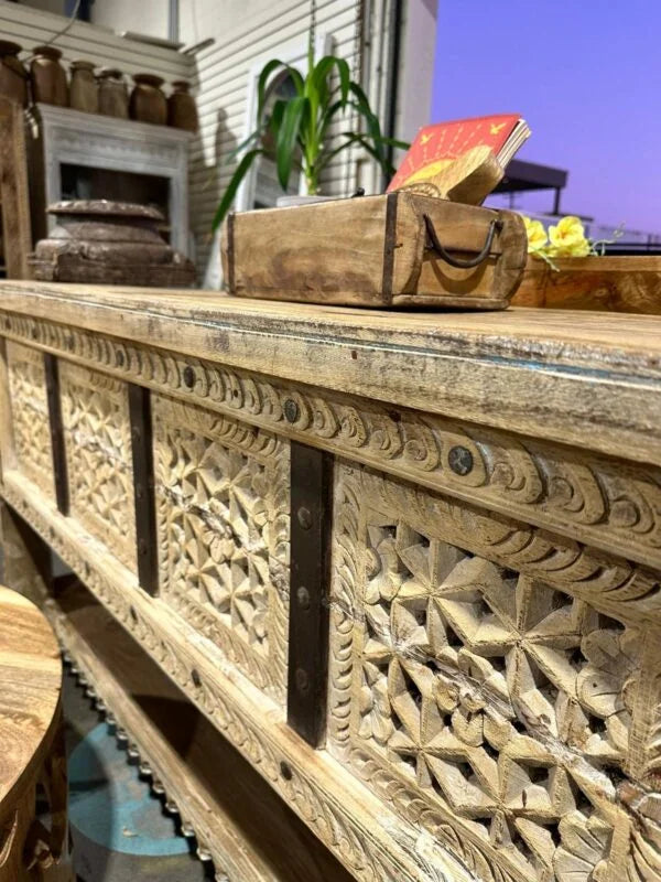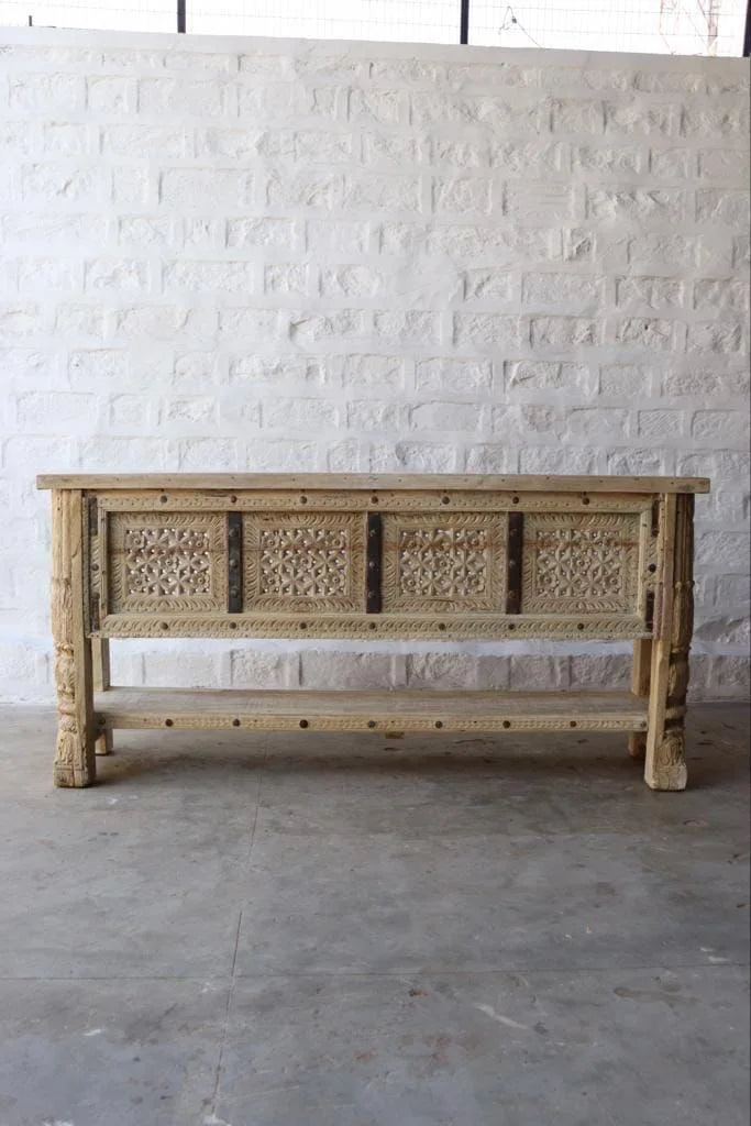 HANDCRAFTED KERALA CARVED WOOD BUFFET CONSOLE TABLE