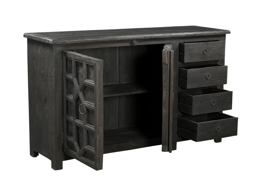 HANDCRAFTED SOUMYA CARVED WOOD BLACK CONSOLE SIDEBOARD CABINET