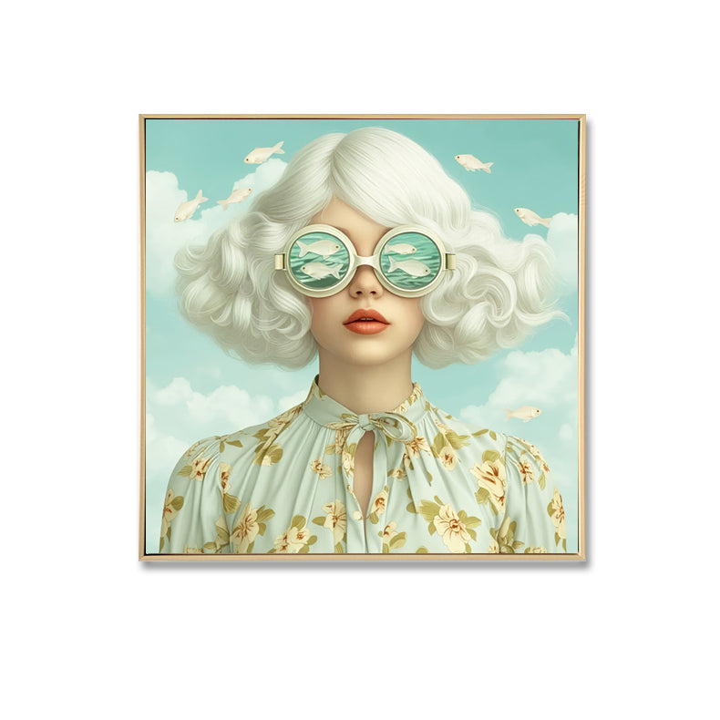 HANNA IN THE CLOUDS GIRL CANVAS FRAMED WALL DECOR
