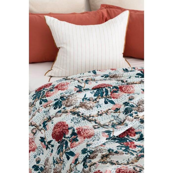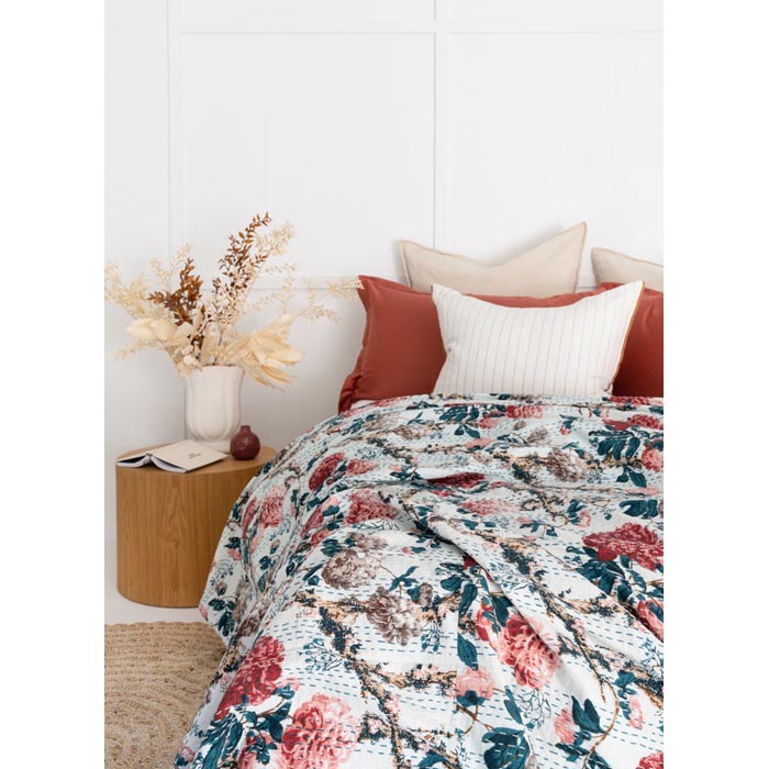 Kantha Quilt Indian Quilt Block Print Quilt Bedspread Bohemian Boho Cotton Throw Quilt Handmade Blanket Doona King Size KQ64