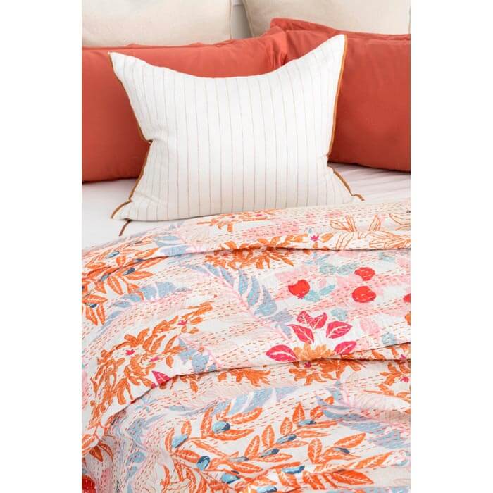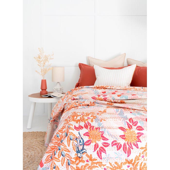 Kantha Quilt Indian Quilt Block Print Quilt Bedspread Bohemian Boho Cotton Throw Quilt Handmade Blanket Doona King Size KQ71