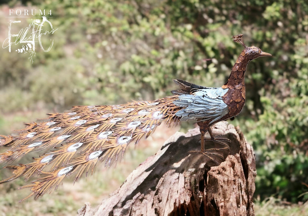 LARGE GALVANIZED & RUST METAL PEACOCK
