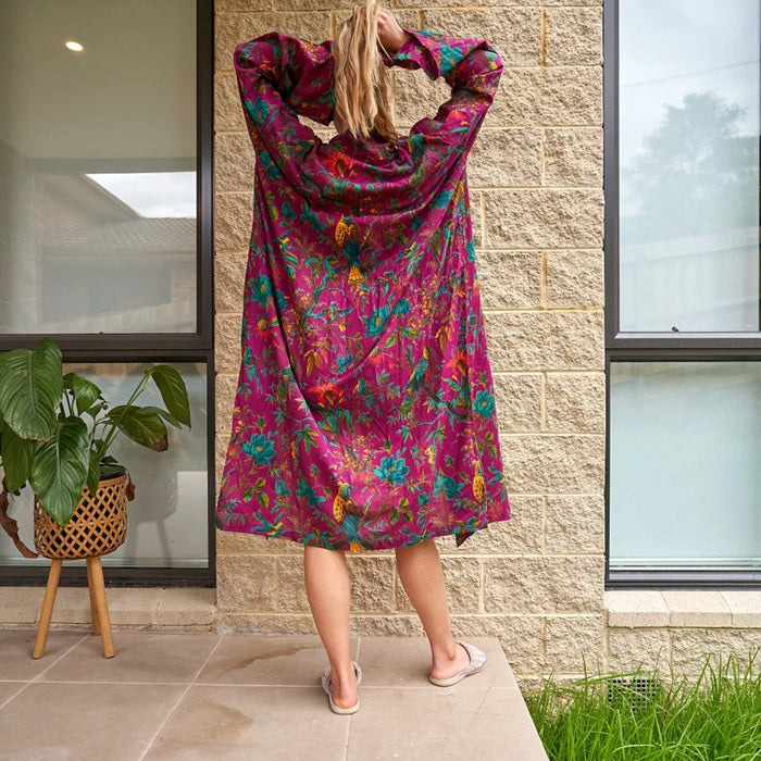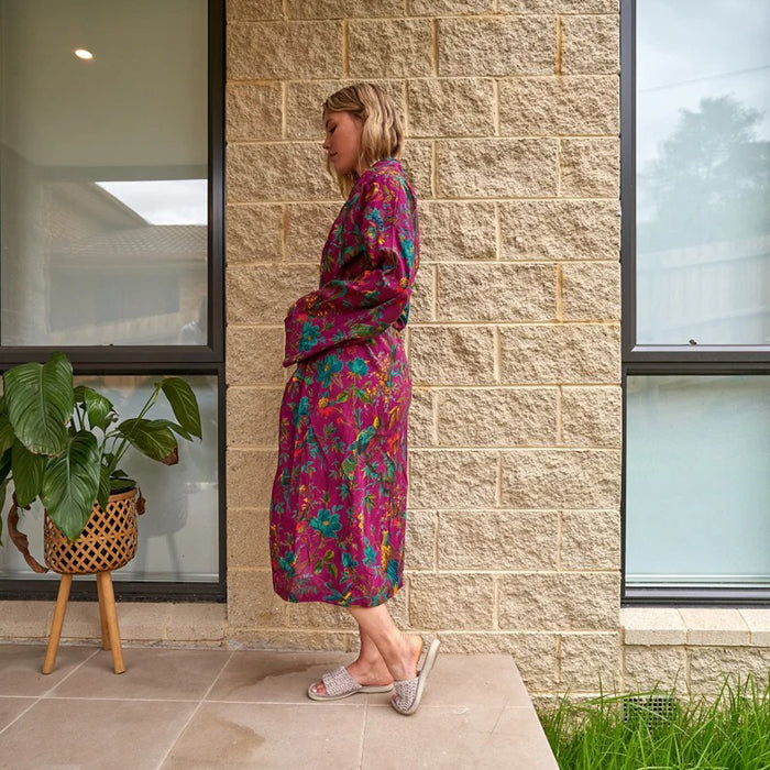 Cotton Kimono Bathrobe Cardigan Dressing Gown - Beach Pink Robe