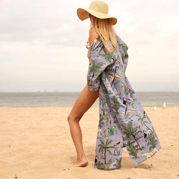 Cotton Kimono Bathrobe Cardigan Dressing Gown - Grey Jungle