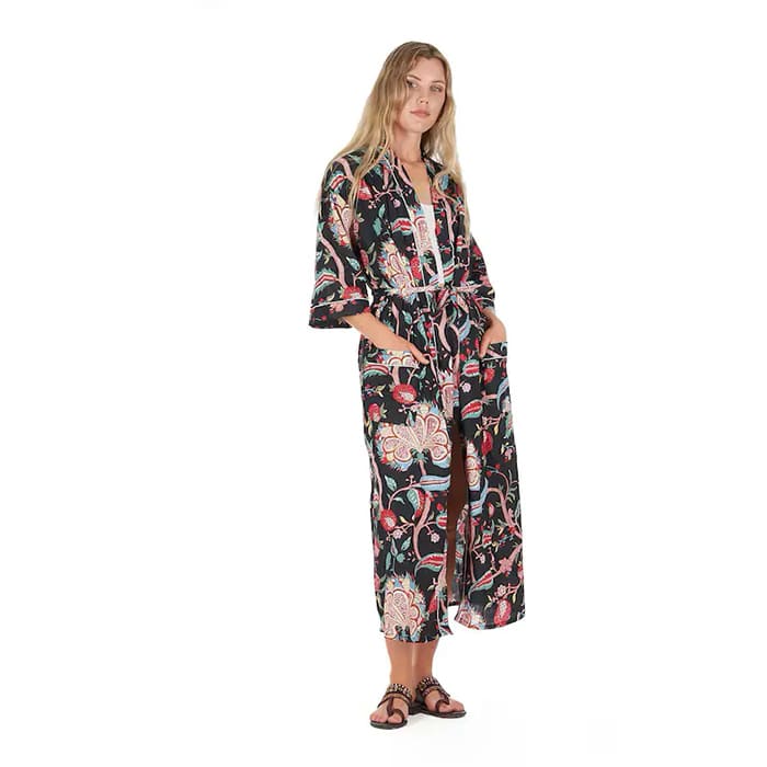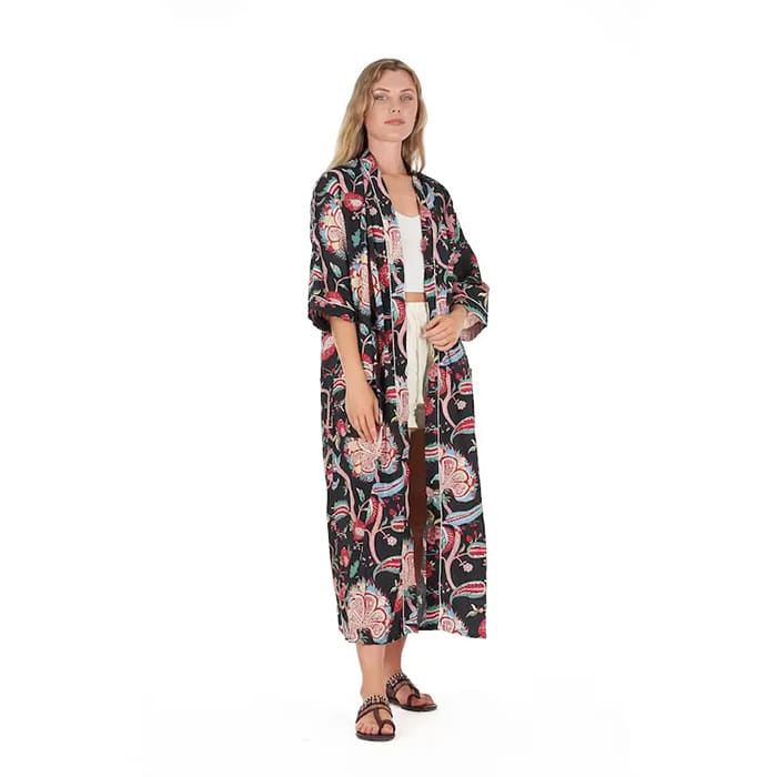 A beautiful Frida Kahlo-inspired kimono robe for a super price. Perfect as a kimono, robe or a kaftan. Made from super comfy lightweight cotton cambric, treat yourself to ultimate comfort whether you are simply winding up at night, getting ready for the morning, or just cozying up in your lounge to binge watch a movie on Netflix.