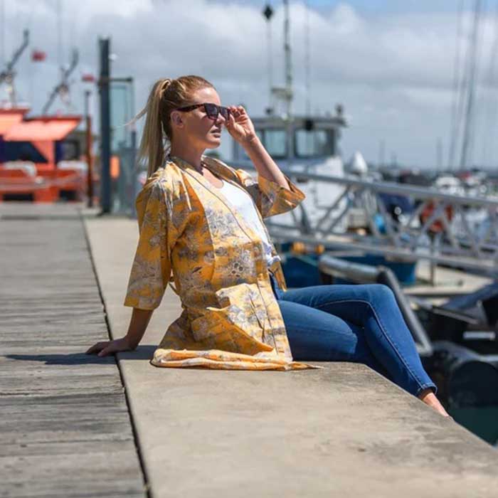 Cotton Kimono Bathrobe Cardigan Dressing Gown - yellow bay