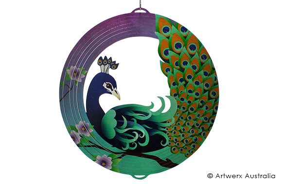 Our Peacock wind whirl spinner is a 30cm design from our coloured collection and would make a great gift. The perfect edition to any home or patio.