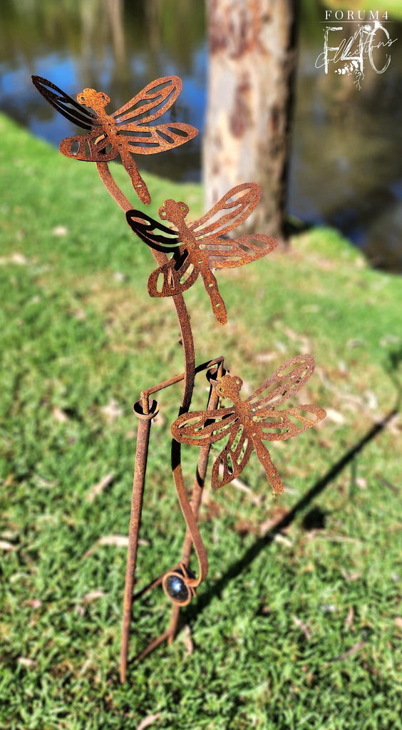 RUSTY DRAGONFLY ROCKING TOPIARY WITH BALL