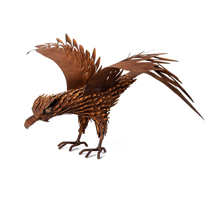 73 x 38 x 20cm Hawk with spread wings: pre-rusted mild steel.