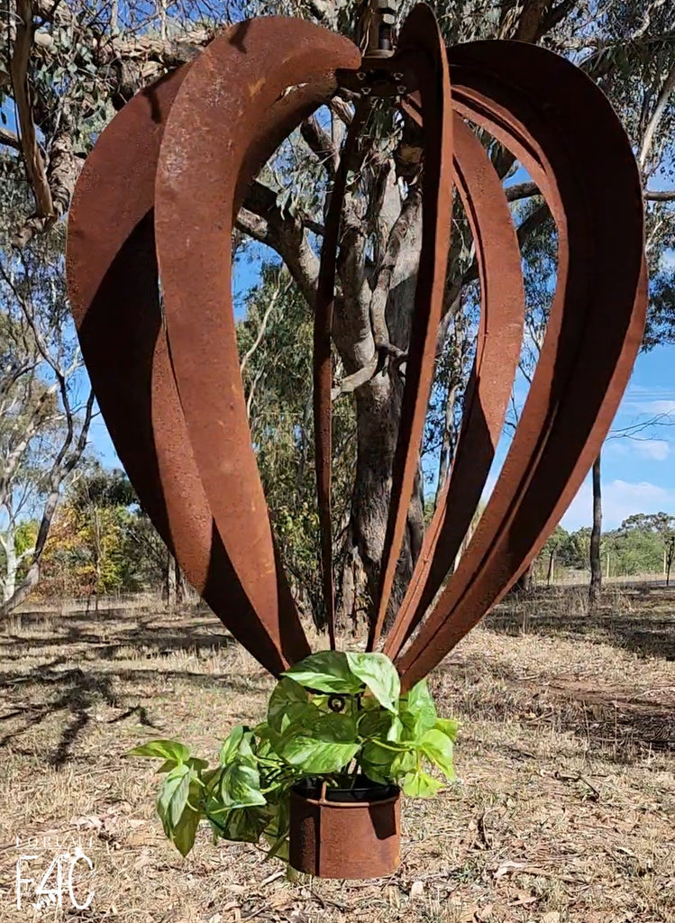 RUSTY HOT AIR BALLOON WIND SPINNER WITH PLANTER