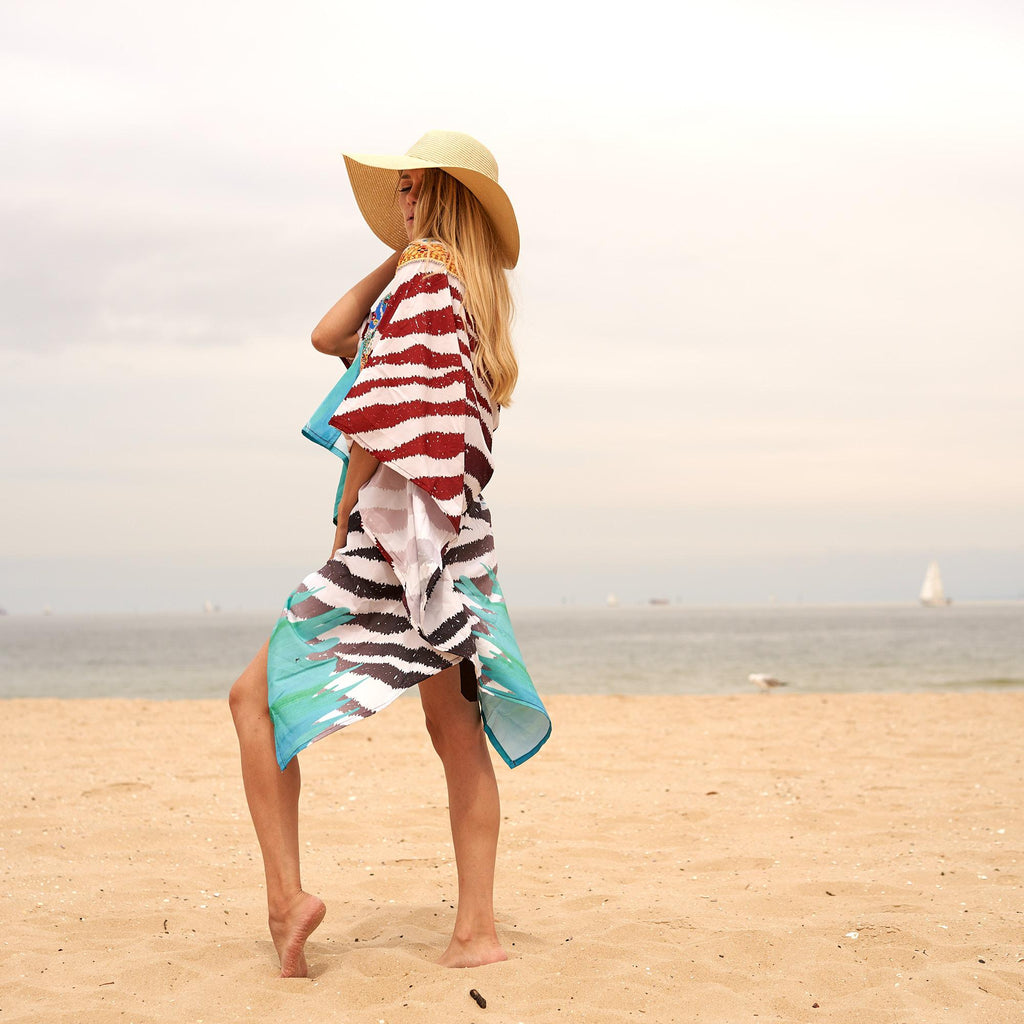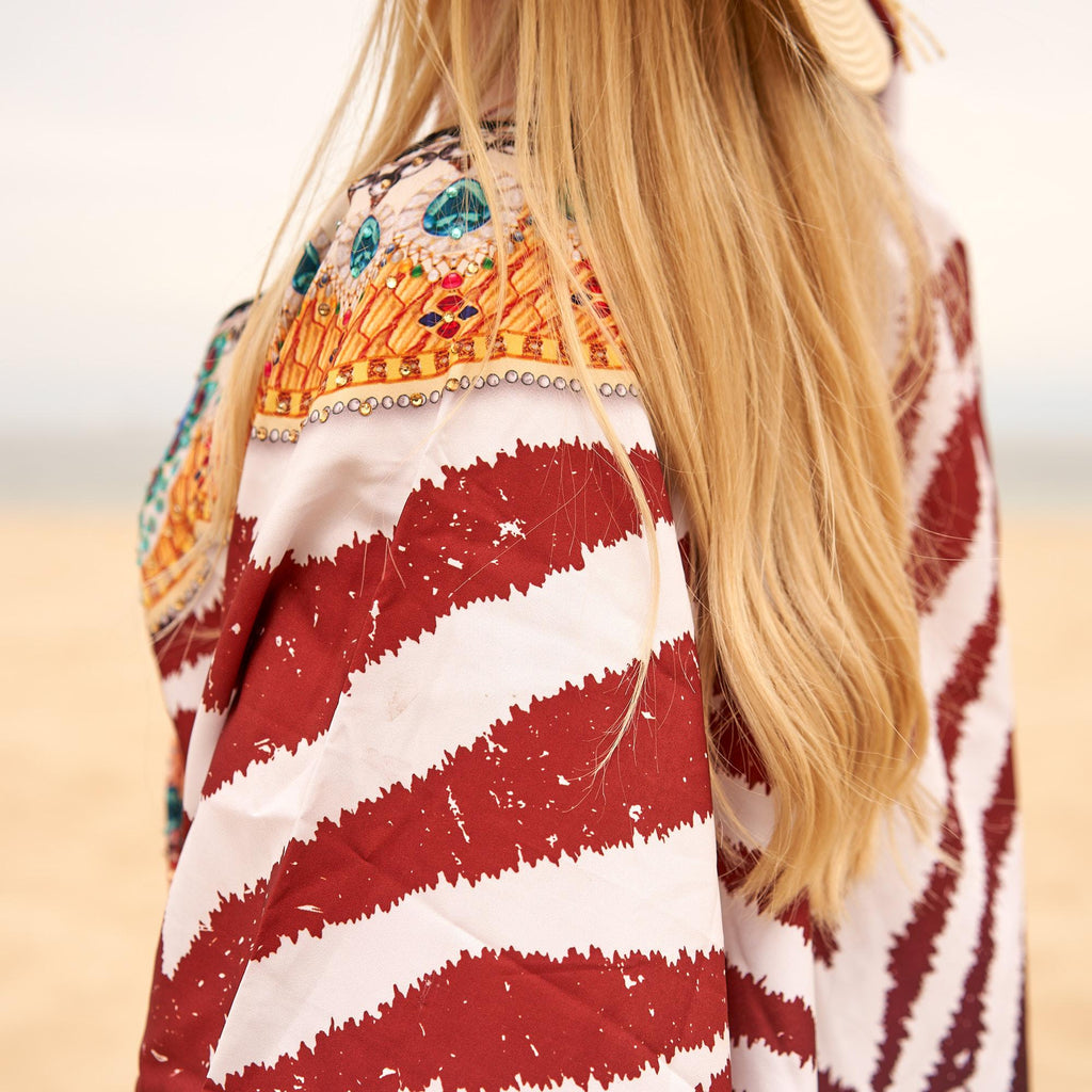 These gorgeous silk kaftans have comfy kimono sleeves to move and groove carefree. This kaftan has stunning, bold colours and patterns.