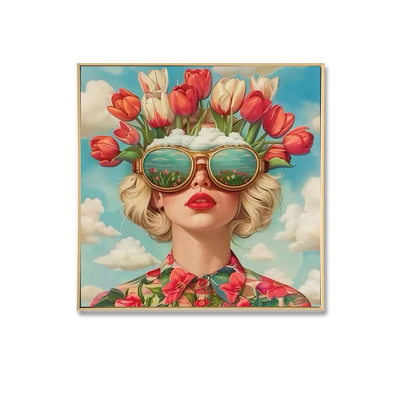 TULIP FLORAL GIRL CANVAS FRAMED WALL DECOR